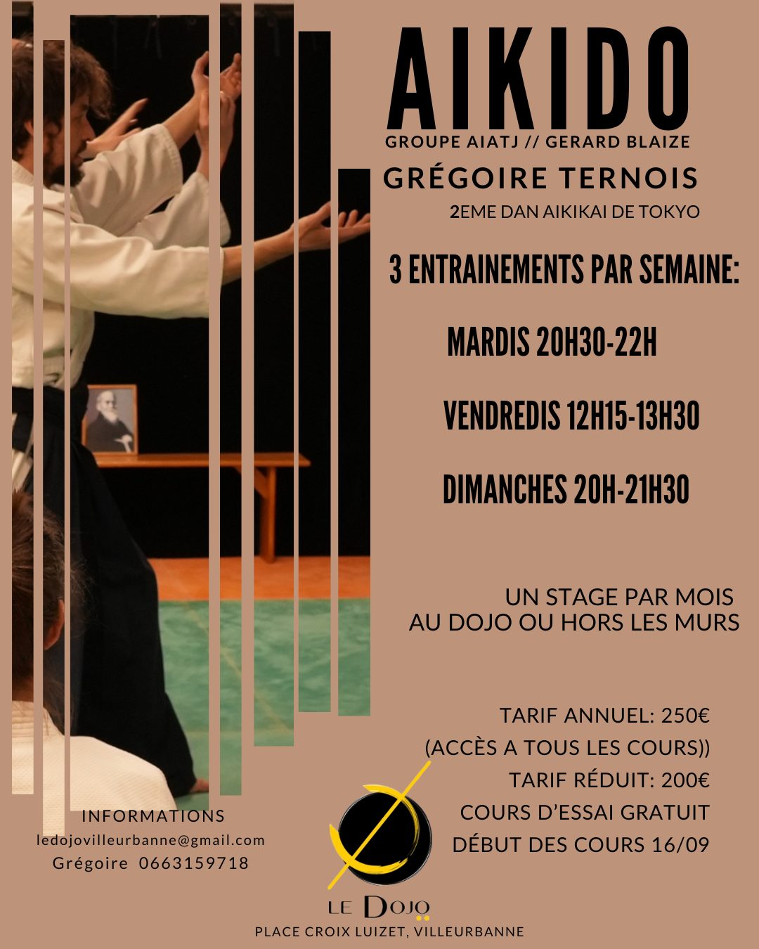 Il existe plusieurs groupes de pratiques de l’aikido. Nous représentons dans la métropole lyonnaise, le groupe AIATJ (association internationale d’aikido traditionnel du Japon), fondé par Gérard Blaize, 7eme dan de l’aikikai de Tokyo.