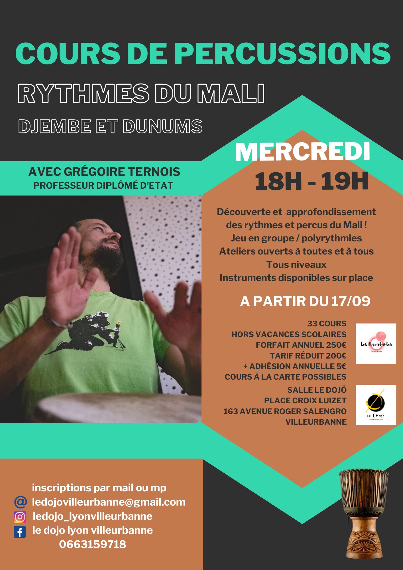 Le cours de danse est précédé d’un cours de percussions de 18h à 19h pour les motivés, motivées.